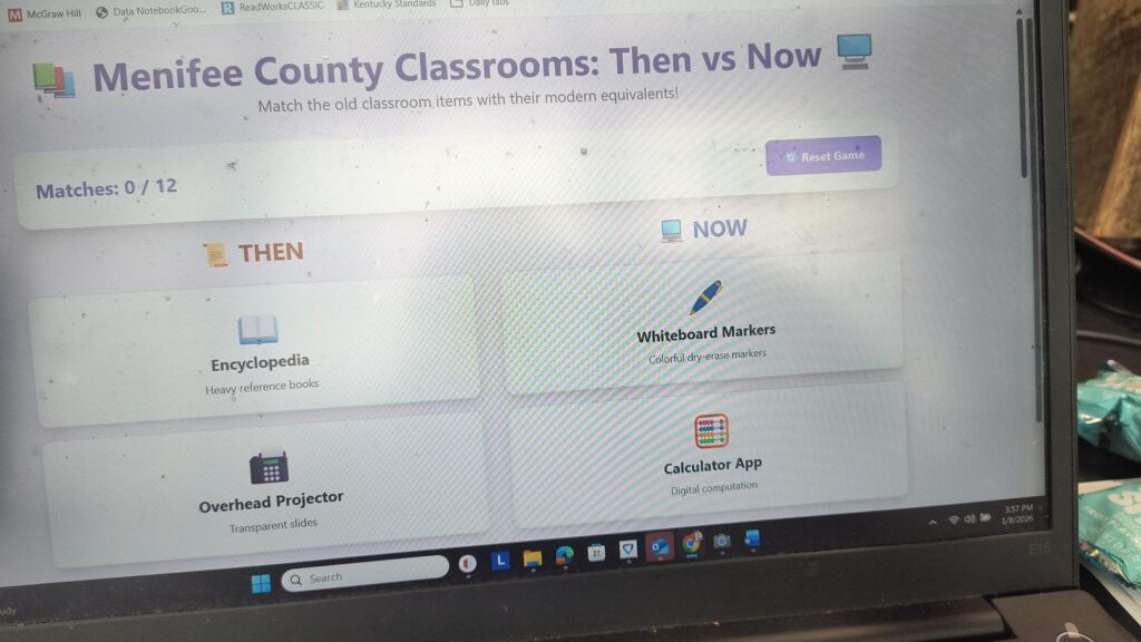 5th Grade Social Studies students at Menifee Central are currently working on their first pbl project for the year: Marking History. Students are working in groups of their choosing to answer the following driving quesiton: How has transportation, employment, and education changed in Menifee County over time? Students are using AI to help them create products such as online games, digital books, board games, and slideshows about their local county’s history, and they are collaborating with the local tourism director to create a display of their products within the county.