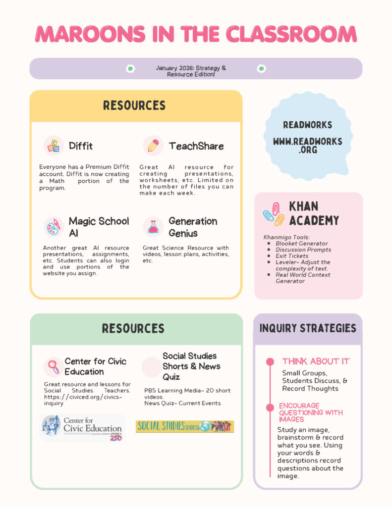 The January edition of our newsletter is designed to help teachers at Northern Middle School reset and refocus their teaching strategies. This is a time to assess our current position and plan our educational journey from January to May. The strategies highlighted in this newsletter stem from sessions presented in the America’s Promise 250 Grant, along with resources provided by our district.
