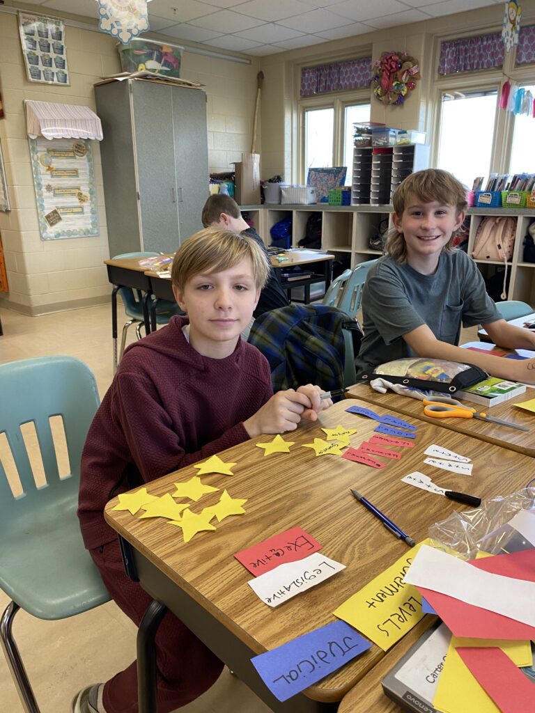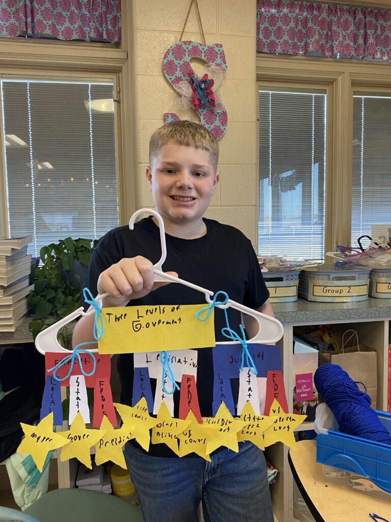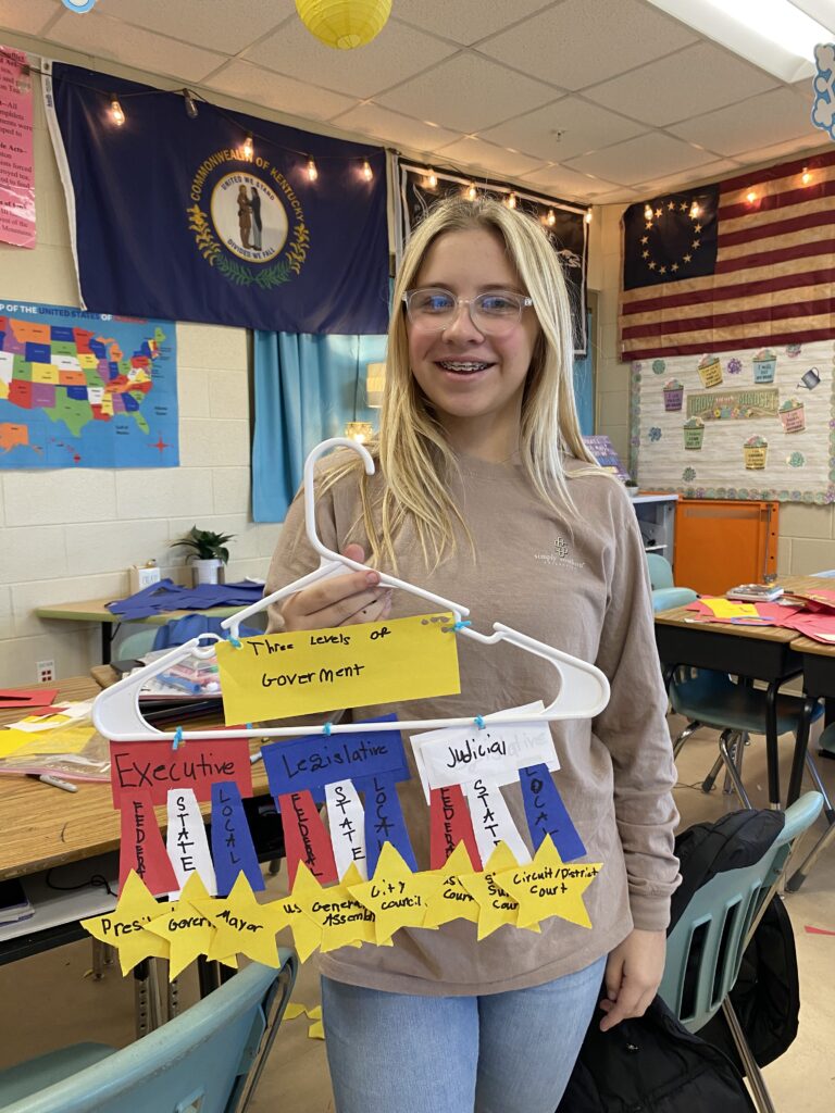 The 5th Grade students at Northern Elementary have been learning about the Three Levels of Government.We discussed the role that the leader/group have in each level (Local, State, Federal) from each branch (Executive, Legislative, Judicial). My students were instructed to trace and label different cut-outs that we used to make a 3D mobile to hang from our classroom ceiling. Students enjoyed singing the famous “Schoolhouse Rock: Preamble Song” and “Schoolhouse Rock: I’m Just a Bill” while they labeled their pieces. The last step of the project was to use their graphic organizer to help them to construct their mobiles. We used clothing hangers to attach the pieces to. Students loved being able to create this fun project. An extra bonus is that our 5th Grade Social Studies classroom looks beautiful and students had fun while learning about the Levels of Government.